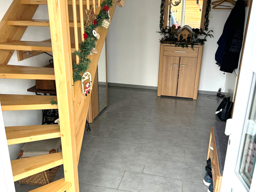 Das Haus bietet eine offene Wohn-/Essküche mit Zugang zu einem kleinen Balkon, ein Büro, sowie eine separate Gästetoilette. Im Untergeschoss befindet sich ein großer Abstellraum mit vielen Staumöglic...