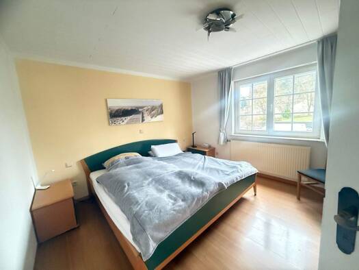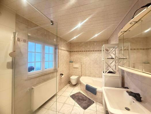 Das Einfamilienhaus in ruhiger Wohnlage mit großer sonniger Terrasse und schönem Garten wurde 2018 grundsaniert. Sämtliche Leitungen wurden erneuert, neue Böden verlegt, neue Fenster, Terassen- und H...