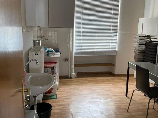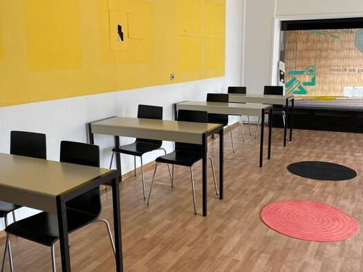 es ist auf B39 Bundesstraße mit knapp 20 Meter Schaufenster zentral 3 Minuten vom Hauptbahnhof mit Bestuhlung und Tisch