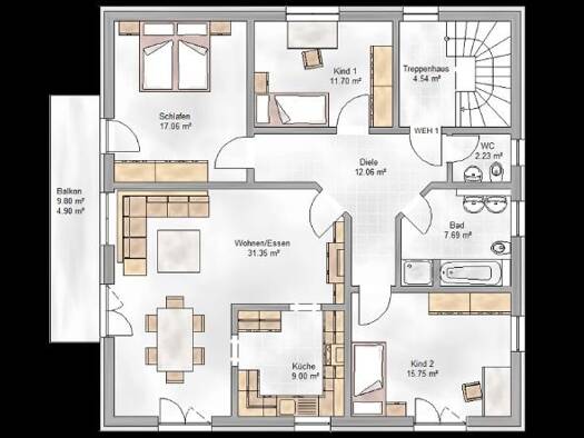 Objektbeschreibung Unser Komforthaus bietet Platz für die ganze Familie. Gemütlichkeit wird hier groß geschrieben. Hier können Sie sich frei entfalten. Raumaufteilung Unser Planer stimmt mit Ihnen de...