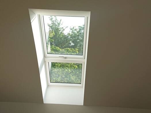 Individuelle Doppelhaushälfte über drei Ebenen, verbunden mit Freitreppe. Je Ebene ein offenes Zimmer. Sehr ruhige Lage mitten im Ort. Eine Wohnung für junge Menschen oder Junggebliebene.