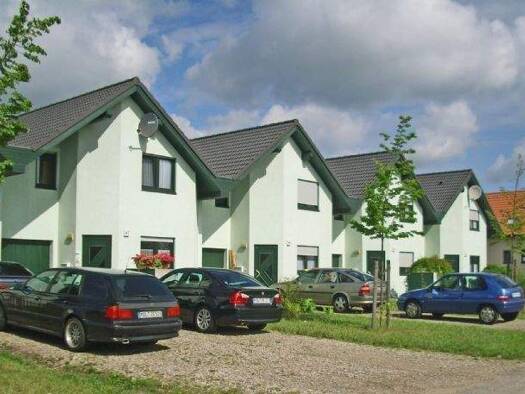 Kleine Wohnanlage am Breiten Luch mit Reihen- und Einfamilienhäusern Modernes Reihenmittelhaus mit Garten und drei Wohnebenen EG: großes Wohnzimmer mit bodentiefen Fenstern ; Gäste-WC mit WM-Stellpl...