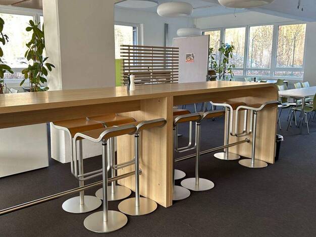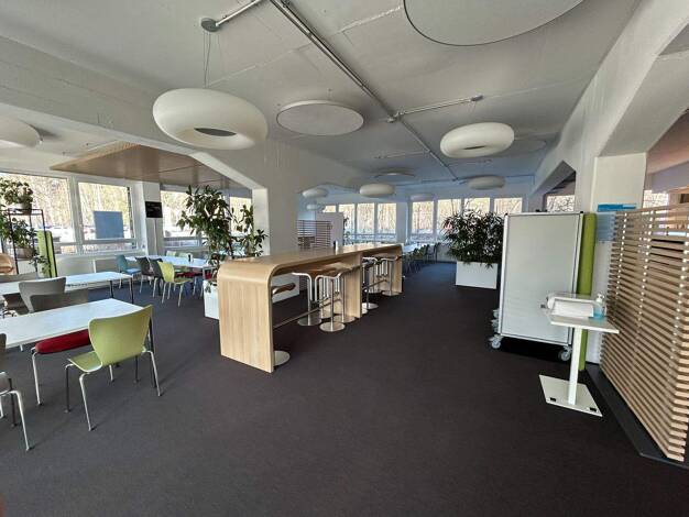 Die Kantine befindet sich im 2. Obergeschoss eines modernen Bürohauses und ist funktional sowie hochwertig ausgestattet. Sie verfügt über eine großzügig gestaltete, voll ausgestattete Küche mit profe...