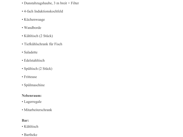 Bei diesem Objekt handelt es sich um eine Gastgewerbeimmobilie, die derzeit als Restaurant betrieben wird. Die Höhe der Miete beträgt 3.365,00 €. Für das Inventar und die Lage wird eine Ablösesumme i...