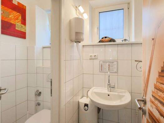 Die Fläche erstreckt sich hälftig über das Erdgeschoss (drei Treppenstufen unterhalb des Erdniveaus) sowie das Kellergeschoss eines Altbaus. Die Ausstattung beinhaltet u.a. • insgesamt etwa 70-90 Sit...