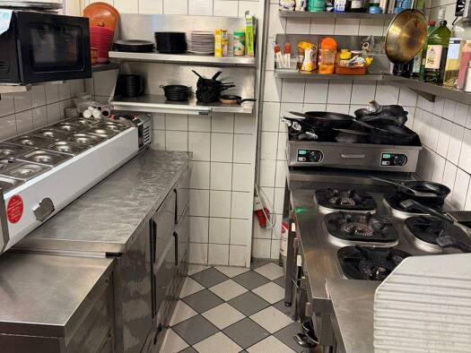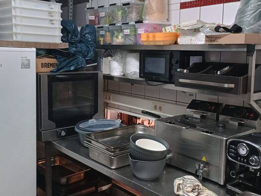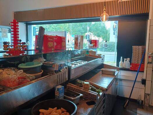Alteingesessene, gut laufende Pizzeria mit offener Küche und Pizzaofen sowie großzügigen Vorbereitungs-, Lager- und Kühlflächen.