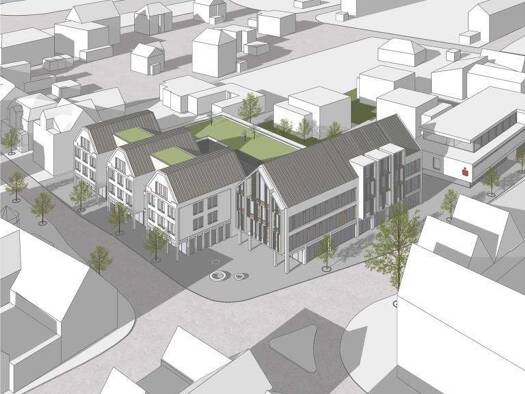DAS NEUBAUPROJEKT SPARKASSEN-KARREE - Fertigstellung in Q3/2027 - Energieeffizienzhaus KfW-55-Standard - Massivbauweise - innerstädtisches Ensemble (ca. 8.000 m²) mit einer Kombination aus Wohnen, Le...