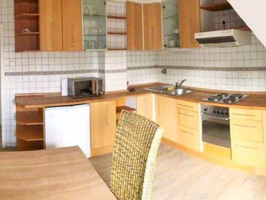 Die großzügige 1,5 Zimmer-Ferienwohnung liegt im Dachgeschoss einer renovierten Einfamilien-Stadtvilla in zentraler Stadtrandlage in Backnang. Auf ca. 55 m² verteilen sich ein großer 1,5-geschossiger Schlaf- und Wohnraum (Boxspringbett mit 1,40x2,00m), eine Küche mit Essplatz, ein schöner großer Süd-Balkon, ein Tageslichtbad mit Bade-/Duschwanne sowie ein separates WC. Die Küche ist voll ausgestattet inkl. einem Plattenherd, Backofen, Mikrowelle, Kühl-Gefrierkombination, Spülmaschine, Toaster, ...