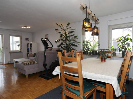 Die Wohnung, mit separatem Außenzugang, Baujahr 1992, wirkt in sich stimmig, großzügig und sehr gepflegt. Der Garten ist liebevoll angelegt, rund ums Haus wachsen Blauregen, Clematis und Kletterrosen und geben dem Haus eine freundliche, einladende Atmosphäre. Die großen Fensterflächen lassen viel Licht herein und öffnen den Blick in den Garten. Das Herzstück ist die eigene Terrasse mit direktem Zugang in den Garten und traumhaftem Ausblick über die Weinberge Richtung Süden – ideal für entspannt...