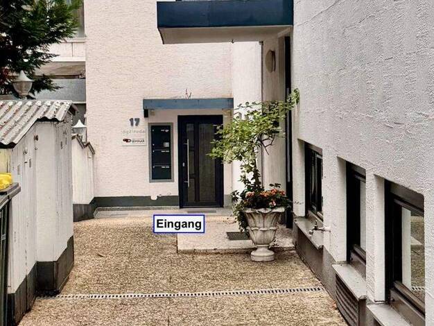 Wohn- und Geschäftshaus mit Büro und Lagerfläche in EG und UG, sowie einer Wohnung im DG. Funktionale Architektur, Das gesamte Gebäude ist laufend instand gehalten. Zugang über 2 Eingänge.