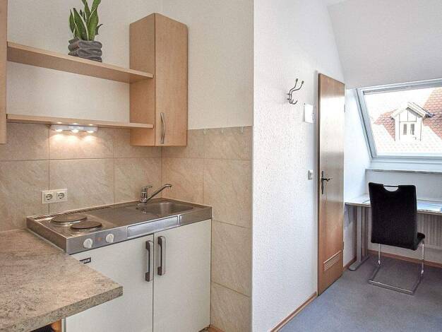 Ideal für Pendler: Vermietet wird eine gepflegte 1-Zimmer-Wohnung mit WLAN, Singleküche und Stellplatz in einem Apartmenthaus in Heroldsberg. Das Zimmer ist eingerichtet mit einem Einzelbett (0,90x2,00 m), Schreibtisch mit Stuhl, Kleiderschrank und einem Sideboard. Die offene Singleküche ist mit einem 2-Platten-Kocher, Geschirr, Wasserkocher,Kochutensilien und einem Kühlschrank ausgestattet. Das Bad verfügt über eine Dusche, Waschbecken mit Spiegel und eine Toilette. Kopfkissen & Bettdecke ...