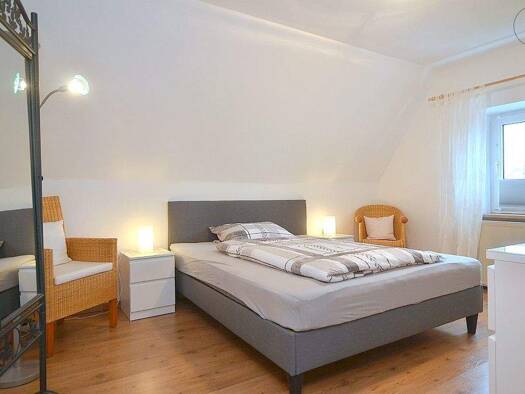 Schön möblierte 2-Zimmer-Wohnung mit WLAN in einem gepflegten Dreifamilienhaus in Schwabach. Die Möblierung des Wohnzimmers besteht aus einer ausziehbaren Couch, Couchtisch, Kommode mit Smart-TV und ...