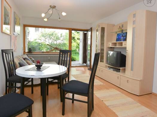 Die 3 Zimmer EG-Wohnung mit Terrasse und Gartennutzung befindet sich in einem Mehrfamilienhaus unweit des Forggensees in Füssen. Vom Flur gelangt man in das große Schlafzimmer mit Zugang zur Terrasse...