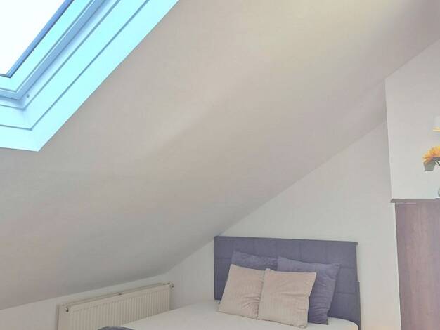 Erstbezug im April 2026 einer gemütlich möblierten 2-Zimmer-Dachgeschosswohnung mit WLAN und Innenhof zur Mitbenutzung in einer sehr ruhige Lage in der Bamberger Innenstadt und nahe des Bahnhofs. Die Möblierung des Wohnzimmers mit Blick auf die Altenburg, besteht aus einem Sofa, Couchtisch, Lowboard mit Flatscreen-TV, Sideboard sowie einem Esstisch mit zwei Stühlen. Das Schlafzimmer ist mit einem französischen Bett (1,40x2,00 m), Kommode, offenen Kleiderschrank sowie einer Kleiderstange eingeri...