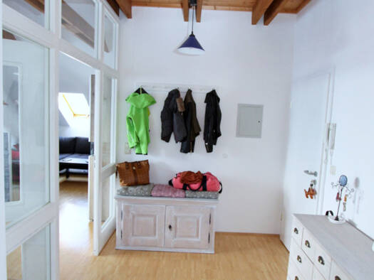 Die Wohnung im 1. OG weist insgesamt eine Wohnfläche von 68,41 m² inkl. Dachterrasse (10,68 m² = Anteil 50 %), verteilt auf 2 Zimmer, Bad und Flur und wurde mit einem hochwertigen Echtholz-Parkett sowie einer Fußbodenheizung ausgestattet. Die Besonderheit hierin liegt, dass diese auch zur Kühlung hergenommen werden kann. Das Tageslichtbad, welches mit einer bodengleichen Dusche, einer Badewanne, einem Waschbecken, einem WC sowie einem Waschmaschinenanschluss versehen ist, wurde mit hochwertigem...