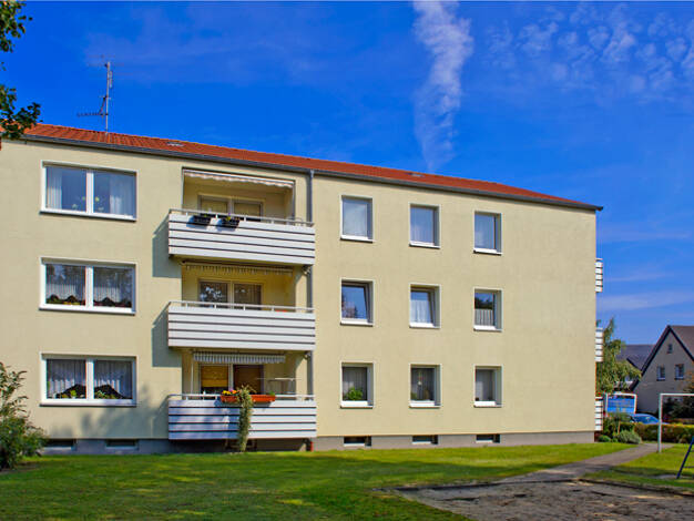 Schöne, helle 3 Zimmerwohnung in einem 6-Parteienhaus mit gehobener Ausstattung. Flur, Bad, Küche und Wohnzimmer sind hell gefliest, in den Schlafräumen liegt Laminat. Das Badezimmer ist mit eine Badewanne und Dusche ausgestattet. Zur Wohnung gehört ein großer Kellerraum und Platz für Waschmaschine und Trockner im großen Waschraum. Der Garten ist für alle Mieter zugängig, Raum für Fahrräder vorhanden. Der Mieter übernimmt das Aufstellen und Zurückstellen der Mülltonnen der Häuser, damit ist ein...