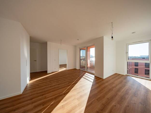Willkommen im naturnahen Quartier "Neues Gartenfeld" in Siemensstadt. Diese Neubauwohnung im Erstbezug lässt kaum Wünsche offen und präsentiert sich mit strapazierfähigen Vinylboden in Holzoptik, Fußbodenheizung, hochwertigen Fenstern und einem modern gefliesten Bad. Erfreuen Sie sich an dem geräumigen Balkon, der viel Platz zum Entspannen bietet. Der offen gehaltene Wohn- und Küchenbereich lässt vielfältige Gestaltungsmöglichkeiten zu. Der Gebäudekomplex verfügt über keine Mieterkeller. Bitte ...