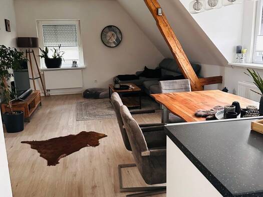 3,5 Zimmer-Maisonette-Wohnung auf 2 Etagen. Die Wohnung liegt im 2. Geschoss mit einem Wohn-/ Esszimmer, Küche, Schlafzimmer, Badezimmer mit Dusche, in der Diele befindet sich die offene Treppe zum Spitzboden. Der Spitzboden umfasst ein weiteres Zimmer und einen Abstellraum. Die Wohnung ist für einen 1-2-Personenhaushalt geeignet. Ein PKW-Stellplatz kann zusätzlich angemietet werden. Das gesamte Objekt ist hausmeistergepflegt. Bei Interesse teilen Sie uns bitte Ihre Telefonnummer - ohne Telefon...