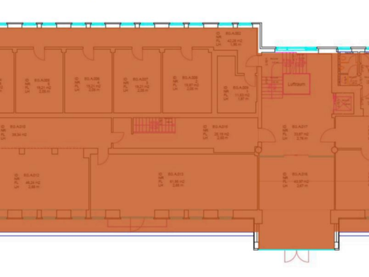 Aktuell stehen folgende Flächen zur Disposition: 1. OG: ca. 284 m² 1. OG: ca. 347 m² 2. OG: ca. 1.091 m² (teilbar ab 522 m²)