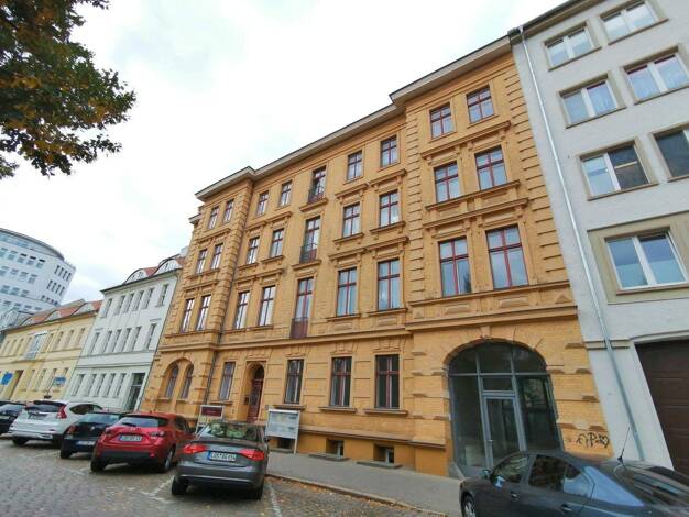 Objektbeschreibung Dieses Mehrfamilienhaus in Würfeloptik verfügt über 28 Wohneinheiten verteilt auf 6 Etagen (inkl. Erdgeschoss) Raumaufteilung Die Wohnung entspricht heutigem Standard und wurde bereits saniert! - Fernwärmeheizung mit Warmwasserbereitung - Bad gefliest mit Eckbadewanne, Handwaschbecken und WC - Kunststofffenster