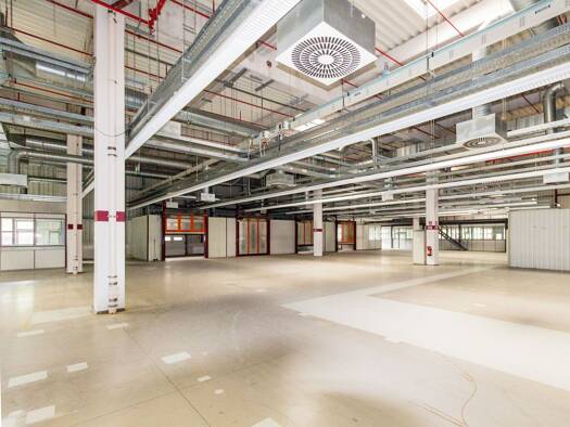 Es handelt sich hierbei um ein freistehendes, komplett eingezäuntes Industrieobjekt mit insgesamt ca. 4.500 m² Büro- und 11.700 m² Produktions- oder Logistikfläche.