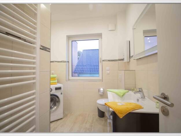 Ihre neue Wohnung befindet sich im Dachgeschoss des 1997 erbauten Hauses. Die gesamte Wohnanlage ist von vielen Grünanlagen umgeben. Die Wohnung wird mit einer Gaszentralheizung beheizt. Es sind doppelt verglaste Holz- sowie Kunststofffenster verbaut.