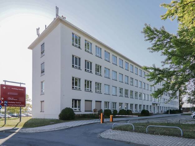 Eine moderne Ausstattung und eine zeitlose Architektur kennzeichnen das Verwaltungsgebäude am Flughafen Dresden. Es befindet sich nur wenige Schritte vom Terminal und dem Parkhaus mit 1.500 Stellplät...