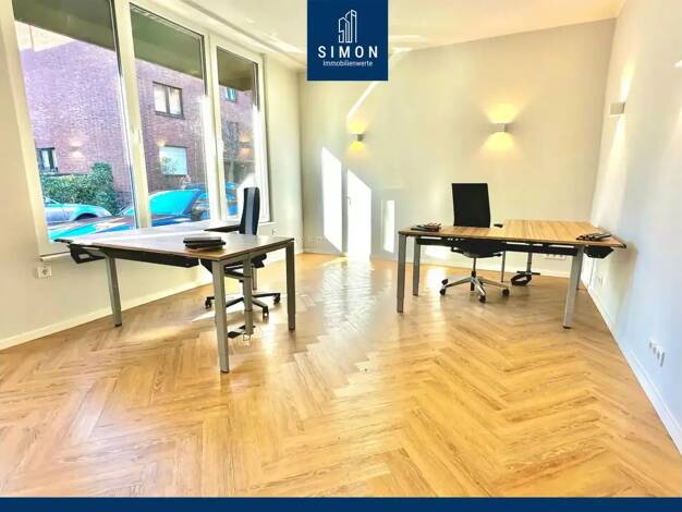Diese außergewöhnlich stilvolle Büroeinheit präsentiert sich als repräsentativer Solitär im Erdgeschoss und überzeugt durch eine klare architektonische Haltung, hochwertige Materialien und maximale D...