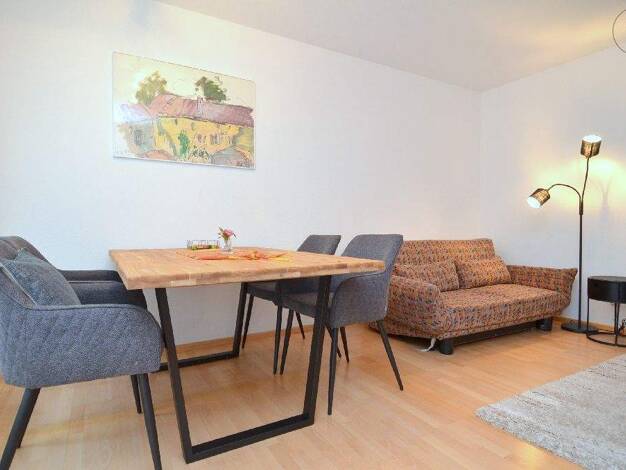 Die Wohnung befindet sich im Gartengeschoss eines Einfamilienhauses im Ulm Ermingen. Eine Außentreppe führt zum eigenen Eingang. Der Wohn- Schlafbereich ist modern eingerichtet mit einem Schlafsofa, ...