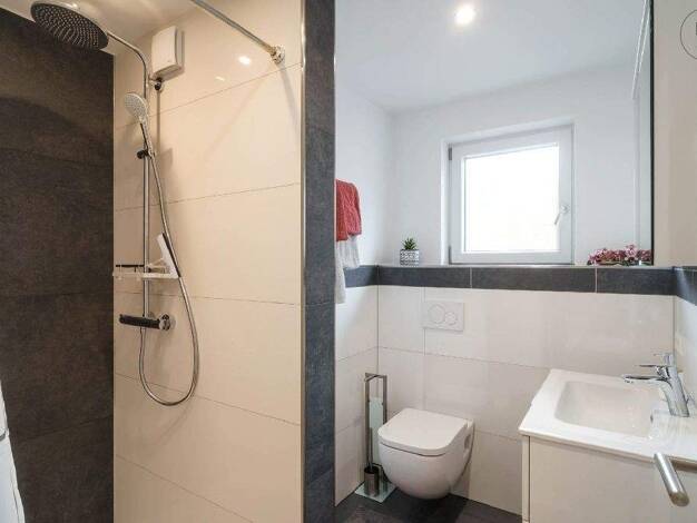 Die Wohnung verfügt über 90m² und befindet sich in einem kleinen Mehrparteienhaus ruhig im Grünen gelegen. Zur Verfügung steht ein geräumiges und modernes Duschbad mit Tageslicht und einer Waschmasch...