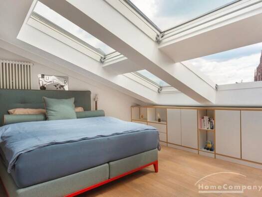 Mitten im Herzen Frankfurts gelegen, bietet dieses Penthouse-Maisonette-Apartment alles, was das Herz begehrt Wohnen: großes Ecksofa, Kamin und Kinofeeling dank Beamer Küche: moderne Küche mit gemütl...