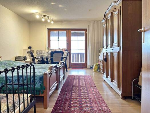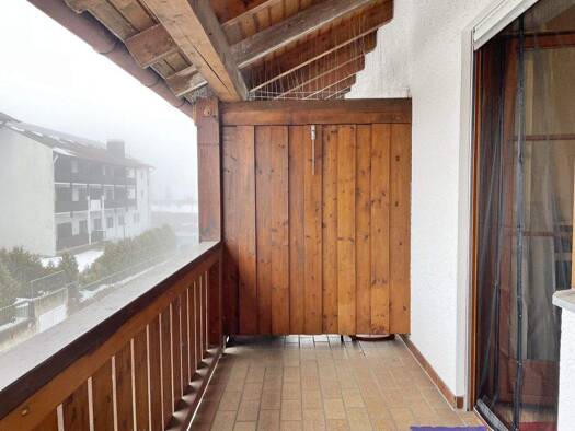Die Wohnung liegt im Hochparterre eines Vierfamilienhauses. Die Wohnung verfügt über einen Balkon mit Blick ins Grüne. Die Ausrichtung des Balkons ist nach Westen.