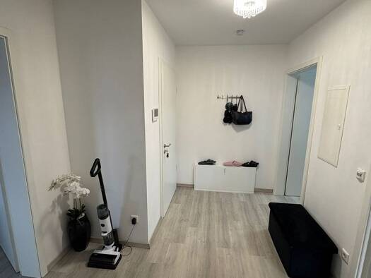 Diese helle, attraktive Etagenwohnung in einer modernen und ruhigen Wohnanlage ist ab sofort zur Miete verfügbar. Sie eignet sich hervorragend für Paare. Sie befindet sich in der ersten Etage eines Zwei-Parteien-Hauses und bietet eine Fülle von Annehmlichkeiten: • 2 Schlafzimmer und Wohnzimmer mit Echtholzparkett • großzügiges Esszimmer, als offene Wohnküche nutzbar • große Dachterrasse (40qm) mit Ausrichtung nach Süden, nicht einsehbar • Badezimmer mit Dusche und elektrischem Handtuchwärmer • ...