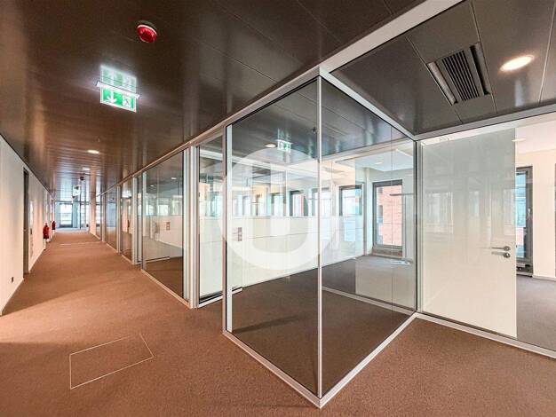 Die Erschließung des Bürohauses erfolgt über ein repräsentatives Treppenhaus mit behindertengerechtem Aufzug. Im Dachgeschoss befinden sich 7 Wohneinheiten. Die darunterliegenden Büroetagen sind lich...