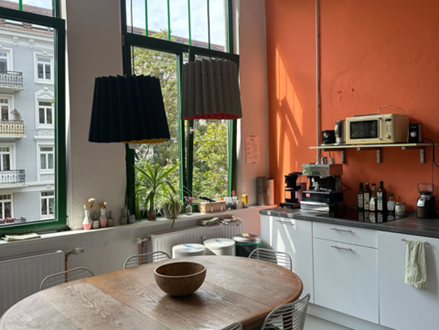 Die Wohnung ist ein kleiner Glücksgriff, da sie sich in bester und ruhiger Lage mitten in Eppendorf befindet und über einen eigenen, recht großen Garten mit Terrasse verfügt. In den Garten haben wir viel Arbeit gesteckt, indem wir zB einen kleinen Teich und Hochbeete angelegt haben. Die Wohnung selbst hat 2 Zimmer, wobei man von Küche, Wohnzimmer, Bad und Schlafzimmer in den Garten guckt. Nur das Gäste-WC und der Flur haben kein Fenster. Alle Räume gehen vom Flur ab, außer das Badezimmer, welch...