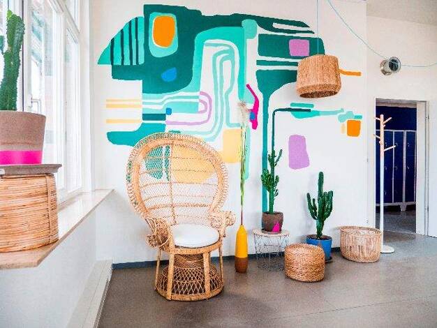Dieser Businesscenter bietet eine einzigartige Wohnzimmeratmosphäre wie in einer klassischen Wohngemeinschaft. Es verfügt über gemütliche Sitzgelegenheiten im Gemeinschaftsraum, eine bunte Küchenzeil...