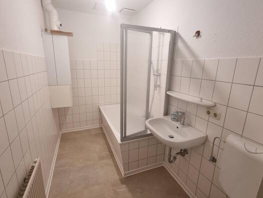 Hier handelt es sich um eine geräumige 2-Raum Wohnung im 1.OG. Die Räume sind mit Dielen und Vinyl ausgestattet. Das Badzimmer verfügt über eine Badewanne.