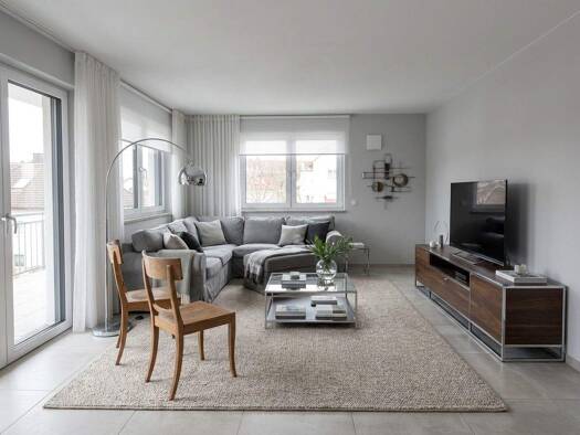 Diese helle teilmöblierte 2-Zimmer-Wohnung mit ca. 61 m² Wohnfläche befindet sich im Zentrum der Stadt Penzberg. Sie betreten die Wohnung über den gefliesten Flur und gelangen von hier aus in alle Räume. Wohnzimmer als auch Schlafzimmer sind mit einem hellen Laminatboden ausgestattet. Die raumhohen Fenster schaffen eine besondere Wohnatmosphäre. Die Küche bietet ausreichend Platz um am lichtdurchfluteten Esstisch Ihre Mahlzeiten genießen zu können. Vom geräumigen Wohnzimmer gelangt man auf den ...