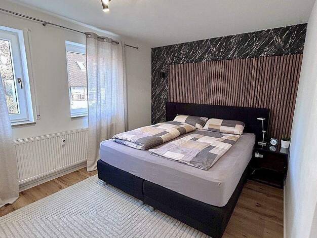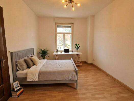 Helles, freundliches und großzügig geschnittenes Zimmer mit ca. 20 m2. 2025 neu hergerichtet und möbliert: Schrank, Sofabett (mit Bettkasten), Couchtischchen; elektr. höhenverstellbarer Schreibtisch, höhenverstellbarer Schreibtischstuhl, Rollcontainer; Regal, dimmbares Licht, WLAN, u.s.w.. 1 Dusche-/WC- Einheit im EG, d.h. zwei 2 WG-Zimmer teilen sich eine gemeinsame Dusche / WC; gemeinsame Küche mit Zugang zu Terrasse und Garten; voll ausgestattet: RGB/LED-Lampe, Spülmaschine, Herd (Ceranfläch...