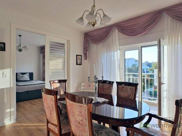### Please note the availability date! Bitte das Verfügbarkeitsdatum beachten! ### möblierte Wohnung mit sonnigem Balkon in einem freistehenden Wohnhaus mit Garten; WLAN vorhanden; helles Wohnzimmer mit ovalem Esstisch, Vitrine und Ausgang zum Balkon auf der sonnigen Westseite; vorderes Schlafzimmer mit breitem Bett, Kleiderschrank, Kommode und TV; hinteres Schlafzimmer mit Doppelbett, großem Kleiderschrank und TV; separate Küche mit EBK und Esstich am Fenster; Bad mit Dusche und WC; Wohnungsfl...