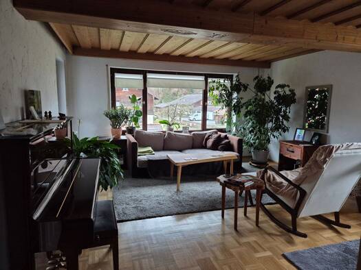Diese schöne 3-Zimmer-Wohnung mit 77 qm befindet sich im Erdgeschoss eines gepflegten Hauses am Samerberg, in absolut ruhiger Lage direkt neben einem Bach, angrenzend an Wald und Natur. Ideal für Men...