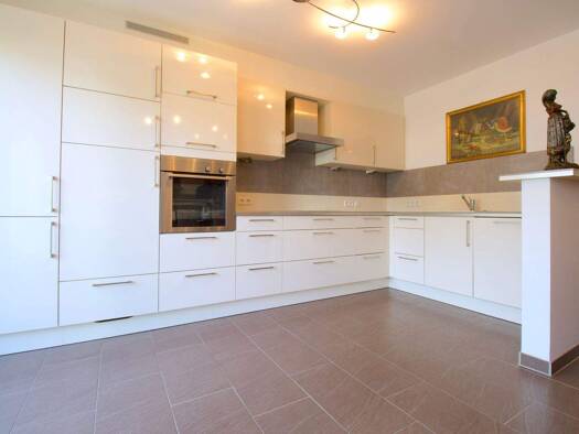Erstbezug 01.05.2026, komfortable Wohnung in attraktiven Wohnumfeld, gehobene Ausstattung, mit geräumiges Tageslicht-Bad mit Dusche und Badewanne, zusätzlich ein Gäste-WC, Fußboden-Heizung, große geräumige Ankleide als separater Raum, neue Einbauküche mit qualitativen Geräten und hinter liegendem Abstellraum, Waschmaschinen- und Trockner-Anschluss in der Wohnung im Bad, große überdachte Loggia, auch ein Allgemein-Garten vorhanden, Kellerraum, 2x Fahrrad-Abstellplätze in Garage, 1x PKW-Stellplat...