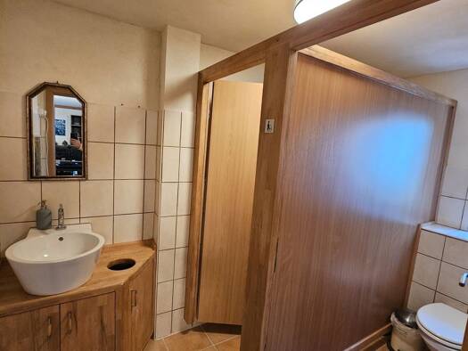 Ein großes Zimmer mit ca. 28 m2 als Wohnzimmer oder 1-2 Schlafzimmer nutzbar. Ein weiteres Zimmer mit ca. 20 m2 als Wohnzimmer oder Schlafzimmer nutzbar. Dann der offene Küchenraum mit Essplatz sowie ein neues grosses Duschbad ohne Badewanne.WC separat. Auf der Südseite eine ca. 44 m² große Terrasse, teils überdacht, rundet das Angebot ab.
