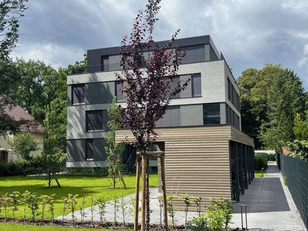 Die moderne 5-Zimmerwohnung verfügt über einen Balkon mit süd-östlicher Ausrichtung. Das äußere Erscheinungsbild der Stadthäuser ist klassisch modern gestaltet. Mit ihren geradlinigen Formen und sandbeigem Klinker fügen sich die Häuser perfekt in die naturnahe, dörflich und von Einfamilienhäusern geprägte Umgebung ein. Das Wohnensemble Grünfinken besteht aus 2 Stadthäusern. Darin befinden sich insgesamt 43 Wohnungen mit zwei bis fünf Zimmern und Größen von 48 m² bis 122 m².