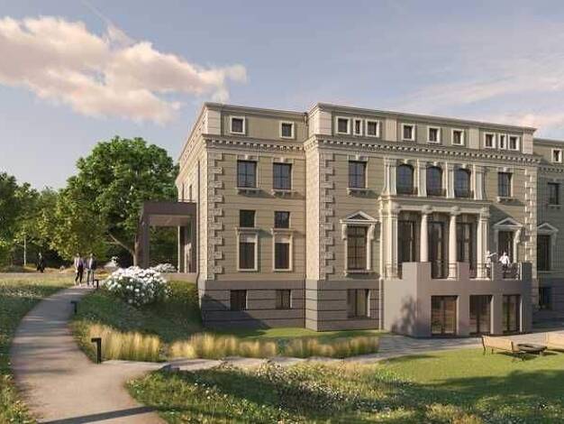 -Architektur- In enger Abstimmung mit der Denkmalschutzbehörde wird die äußere Hülle der Villa Meyer umfangreich saniert. Ein neuer Farbanstrich betont den ursprünglichen Charakter der Villa. Die Hol...