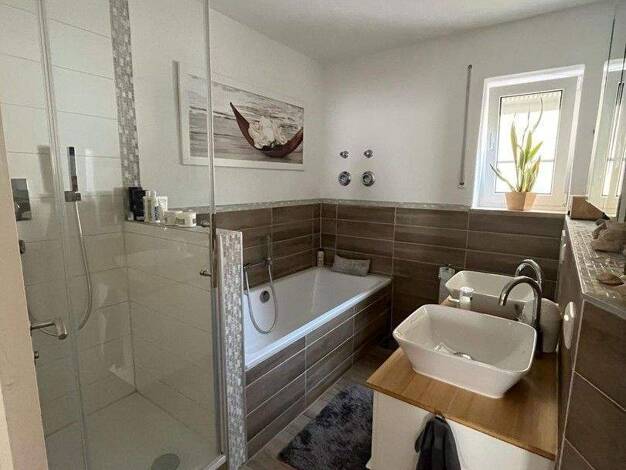 Das 1960 erbaute Wohnhaus wurde 2015 aufwändig und stilvoll saniert und entspricht vom Wohnwert nun weitestgehend einem Neubau. Eine moderne Einbauküche wurde installiert. Die Böden sind großteils Pa...