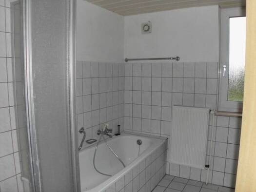 Die Wohnung befindet sich in einer ruhigen gepflegten Nachbarschaft. Zu der Wohnung gehört eine Garage und Kellerraum. Die Zimmer erstrecken sich über 2 Etagen: im EG befinden sich die Küche, Bad, ein Zimmer sowie das große Wohn/Esszimmer. Im 1. OG befinden sich 2 weitere Zimmer mit einem Bad (WC + Waschbecken). Der Garten wird mit vermietet, dafür wird die Pflege des Gartens (Hanglage) erwartet. Sowohl eine vorhandene Einbauküche als auch andere Möbel / Gardinen können bei Zahlung einer Abstan...