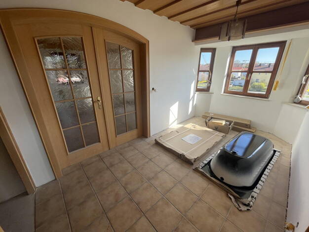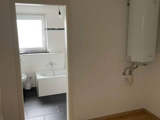 Erstbezug nach Kernsanierung; 2 Zimmer, Wohn-Essküche; Terrasse, eigener Gartenanteil + Garage und Keller Aktuell Endphase der Sanierung; Grundrisse können per Mail zugestellt werden Bilder werden noch aktualisiert KFW 40, Wärmepumpe, Videosprechanlage, ebenerdige Dusche Fußbodenheizung, elektrische Rollos, Garage Vorbereitung Wallbox