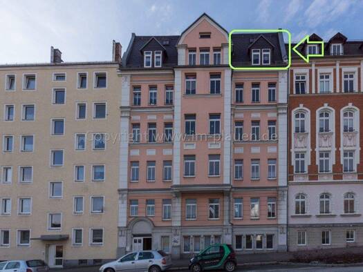 Die zu vermietende 3-Raum Maisonette Wohnung liegt im Dachgeschoss des Mehrfamilienhauses in der Goethestraße 101 in Plauen.