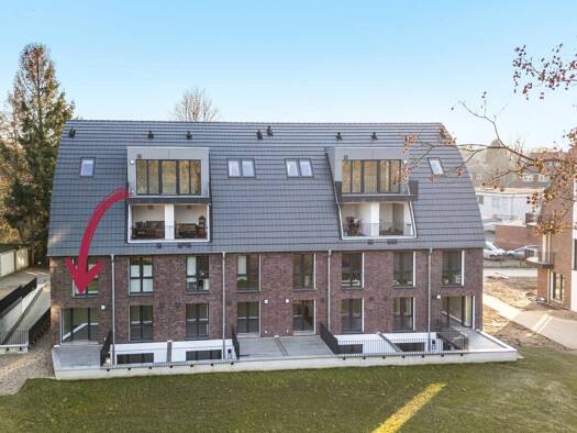 Die von uns angebotene Wohnung verteilt sich über das Erd- / und Gartengeschoss eines modernen Mehrfamilienhauses mit nur vier Wohneinheiten, welches erst 2021 erbaut wurde. Bei der Erstellung des Gebäudes wurden nur hochwertigste Materialien verwendet, sowie modernste technische Einrichtungen und eine Wohnraumlüftung mit Wärmerückgewinnung eingebaut. Der Grundriss gliedert sich im Erdgeschoss in einen repräsentativen Eingangsbereich, wo sich ein Zimmer und ein Duschbad befinden. Über die Trepp...